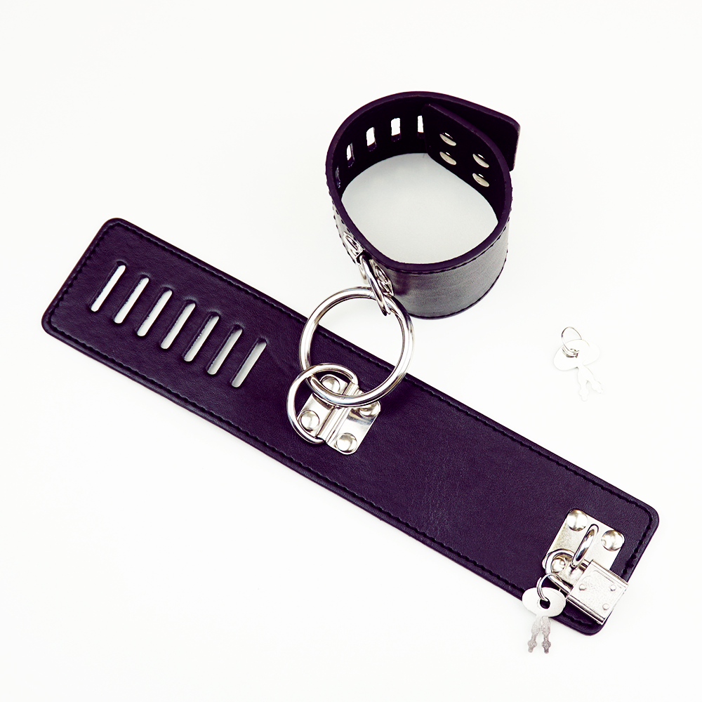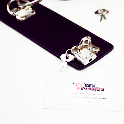 Изделие изготовлено из мягкой эко-кожи, которая не натирает запястье и не оставляет следов на теле. Размер регулируется. Общая длина наручников – 24,5 см. Фишкой этой модельки является замочек с ключиками. Наручники соединены между собой с помощью металлического кольца, благодаря чему вы сможете соединить наручники с другими аксессуарами для связывания из нашей коллекции.